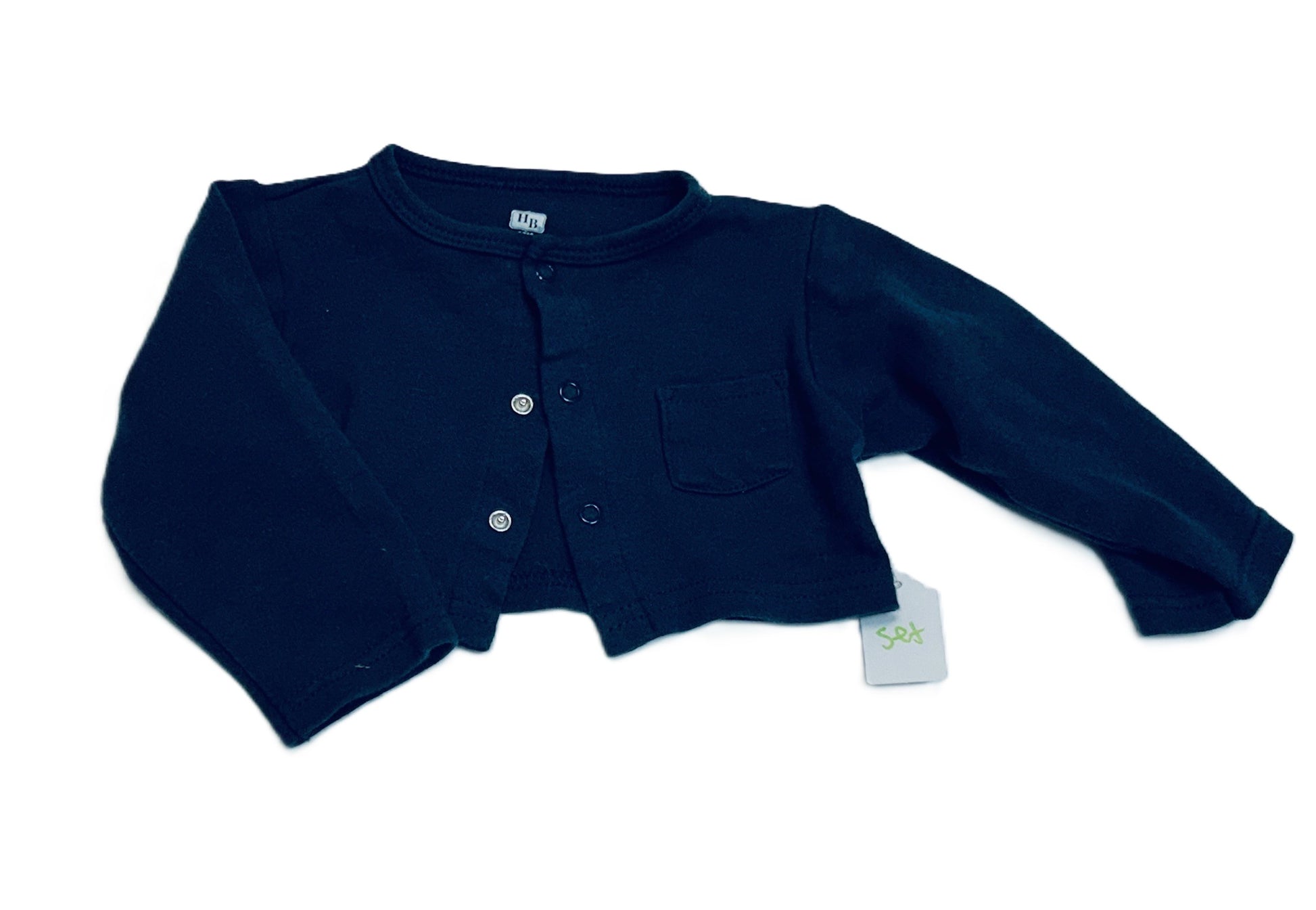 Warm Navy Blue Button-Up Cardigan & White Dress w/ Navy Flowers