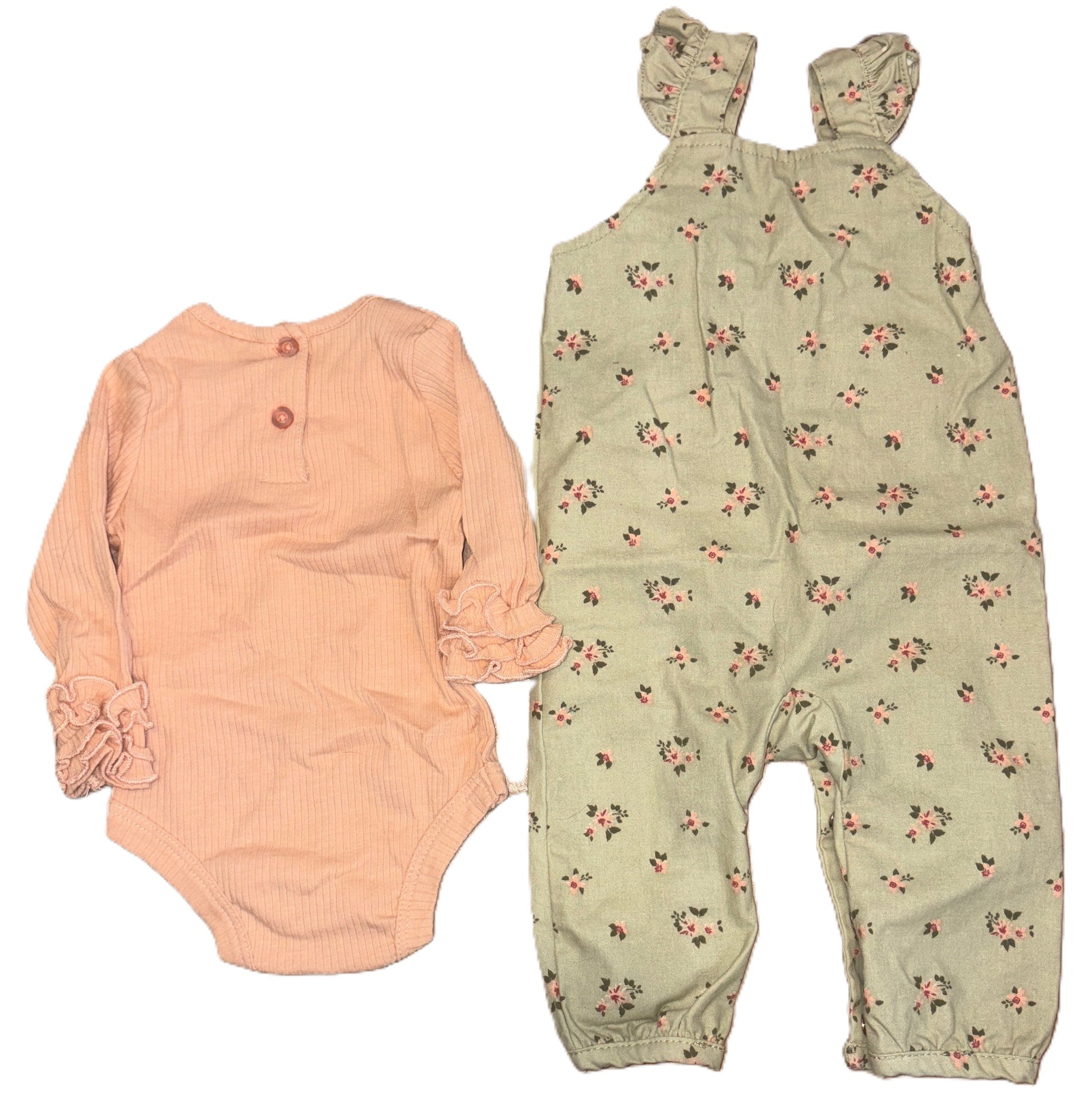 2 Piece Outfit- Long Sleeve Onesie w/ Floral Overalls